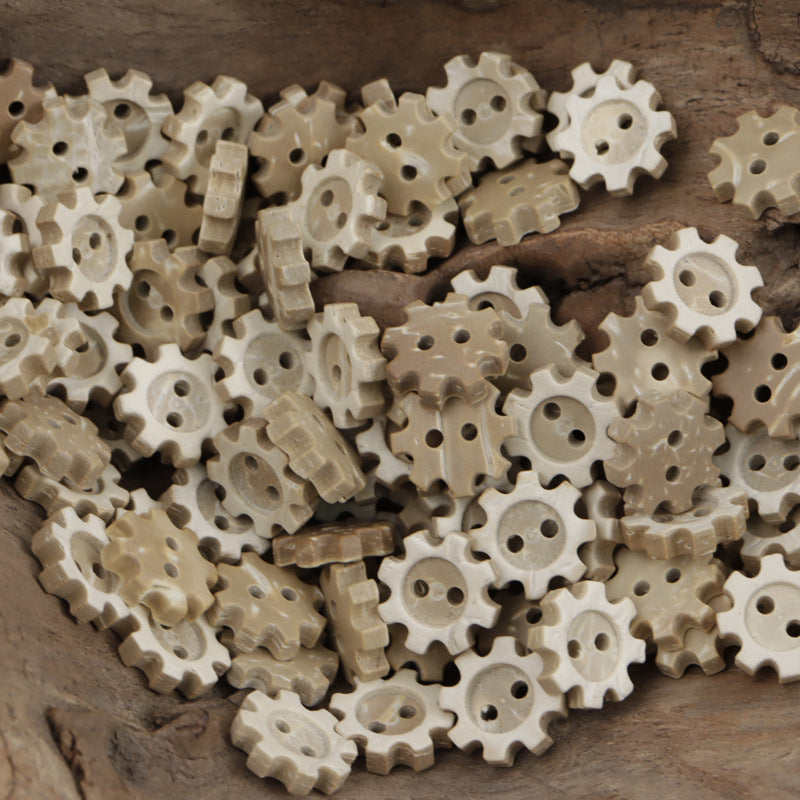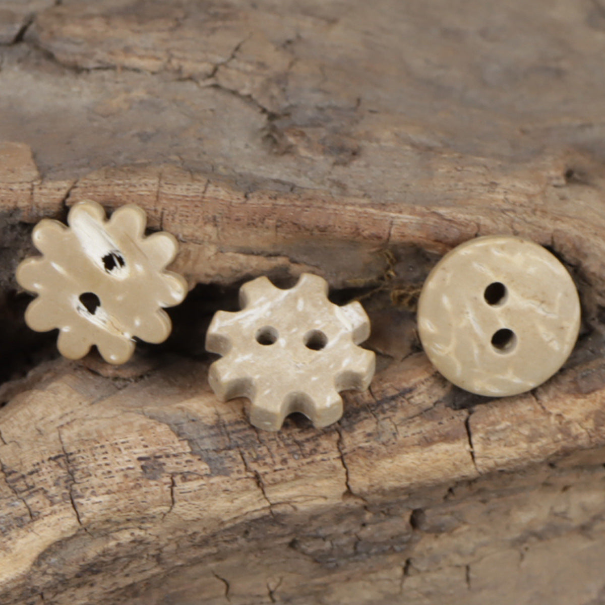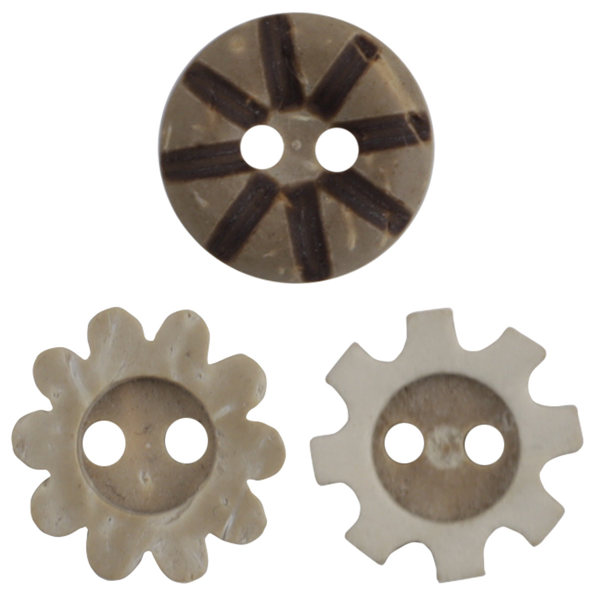 Slunečnicové ozubené kolečko ve tvaru chleba, 2 dírkové knoflíky z kokosové skořápky, balení 60 kusů