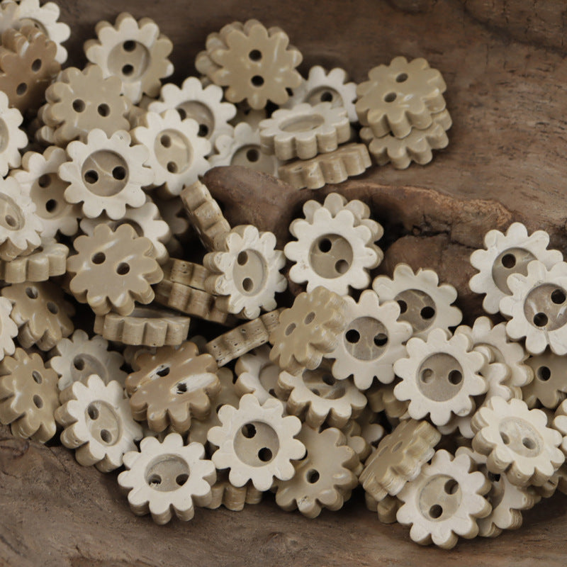 11,5mm mini roztomilé knoflíky ve tvaru slunečnicového ozubeného chleba se dvěma dírkami z přírodní kokosové skořápky pro dětské oblečení, balení 60 ks