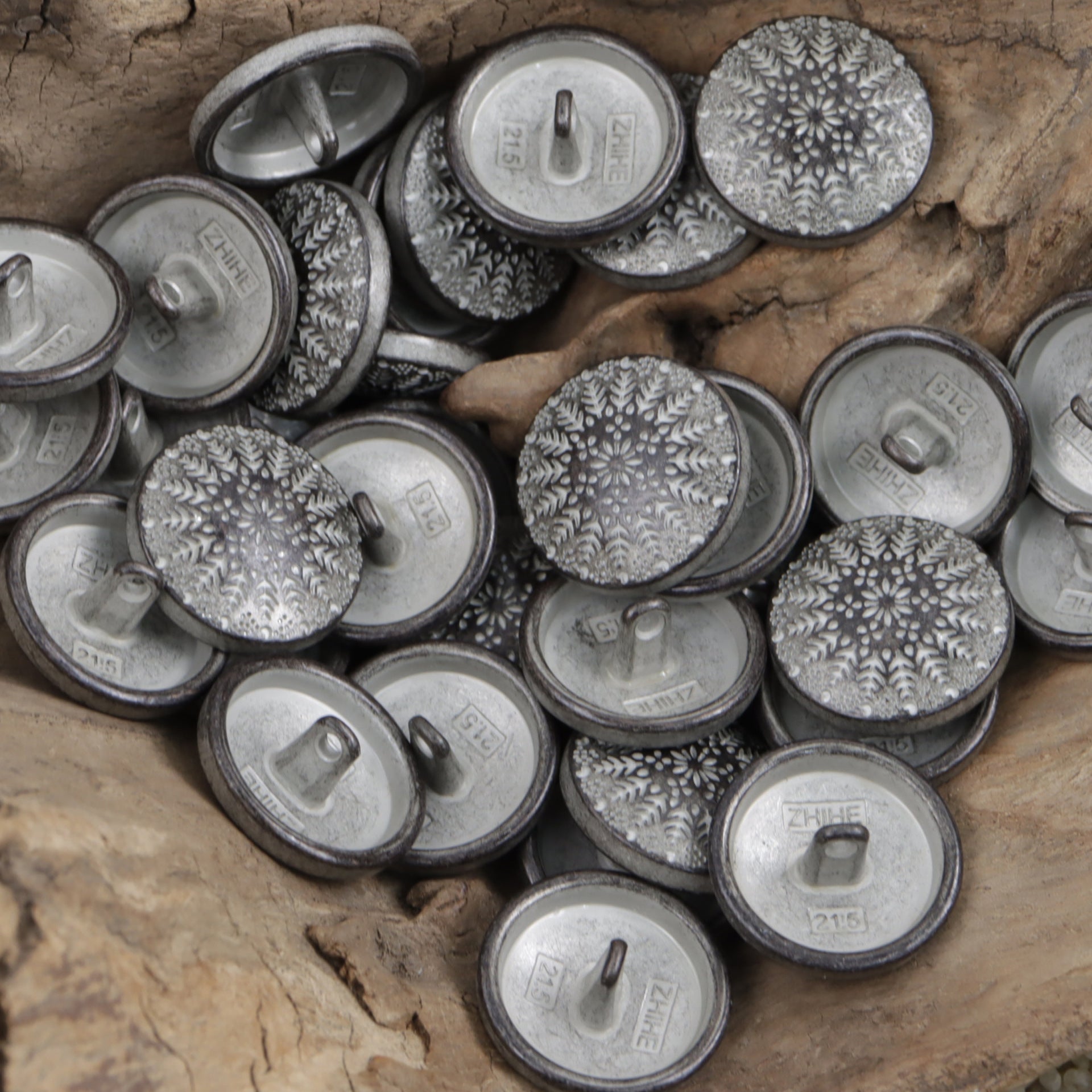 Tyto knoflíky jsou vybaveny očkem, což je velmi praktické pro přišívání na různé typy látek. Ať už jde o silnou vlněnou látku na zimní kabát nebo jemný hedvábný šátek, očko umožňuje snadné a bezpečné připevnění. Tyto knoflíky jsou ideální pro ty, kteří hledají výrazný a elegantní prvek k začlenění do svých oděvů, tašek nebo jiných výrobků z textilu.