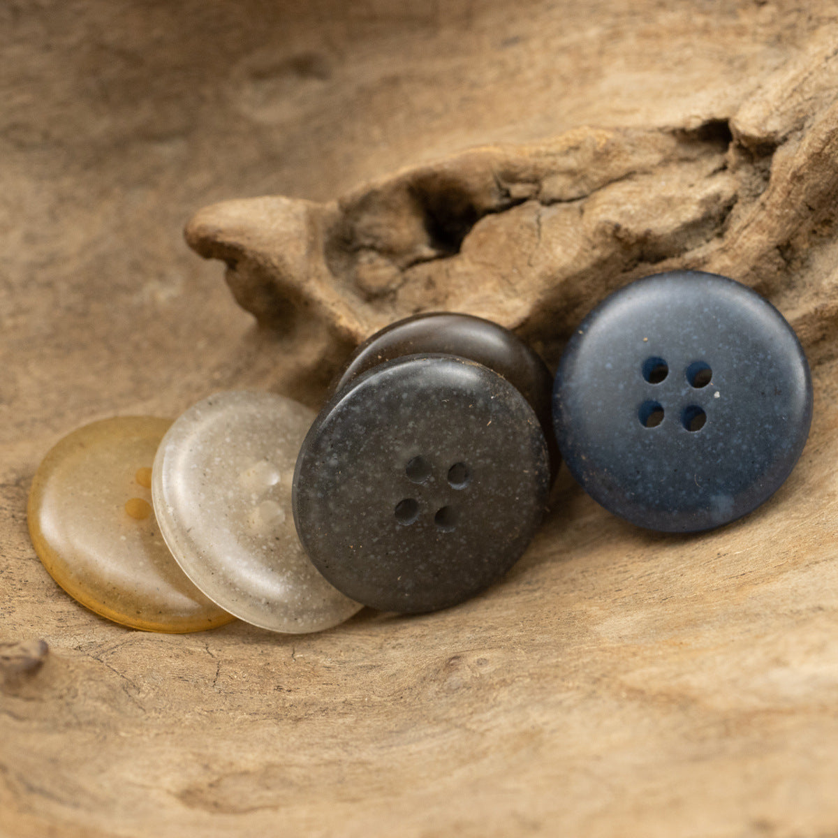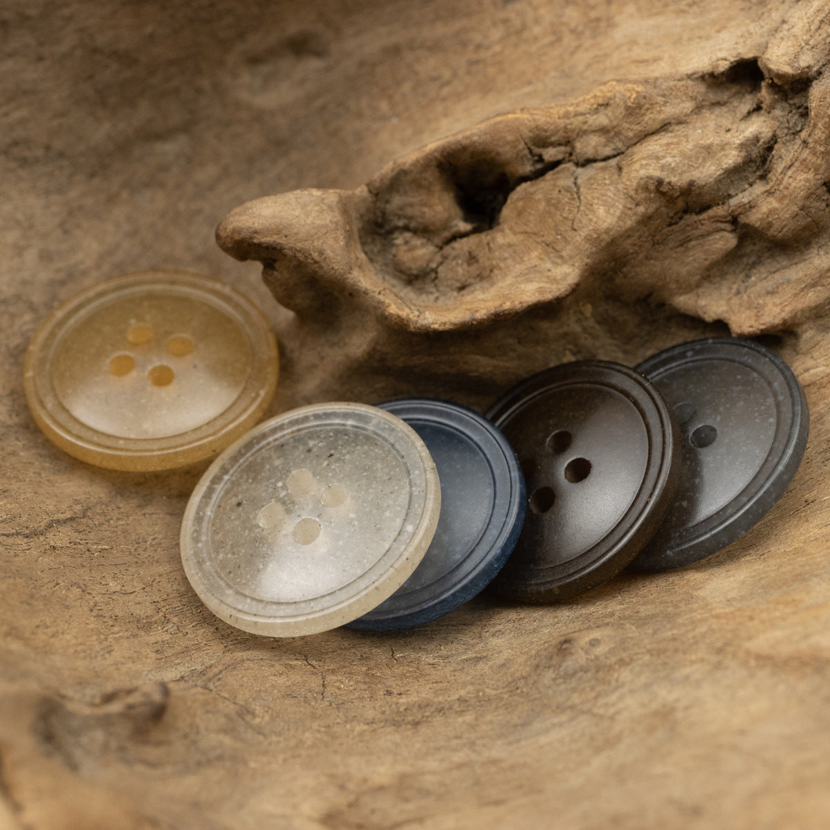 Tyto knoflíky jsou vyrobeny z vysoce kvalitní pryskyřice, která jim dodává hladký a odolný povrch. Matná průsvitná želé barva přidává jedinečný a moderní vzhled, díky čemuž vyniknou na každém kabátu.