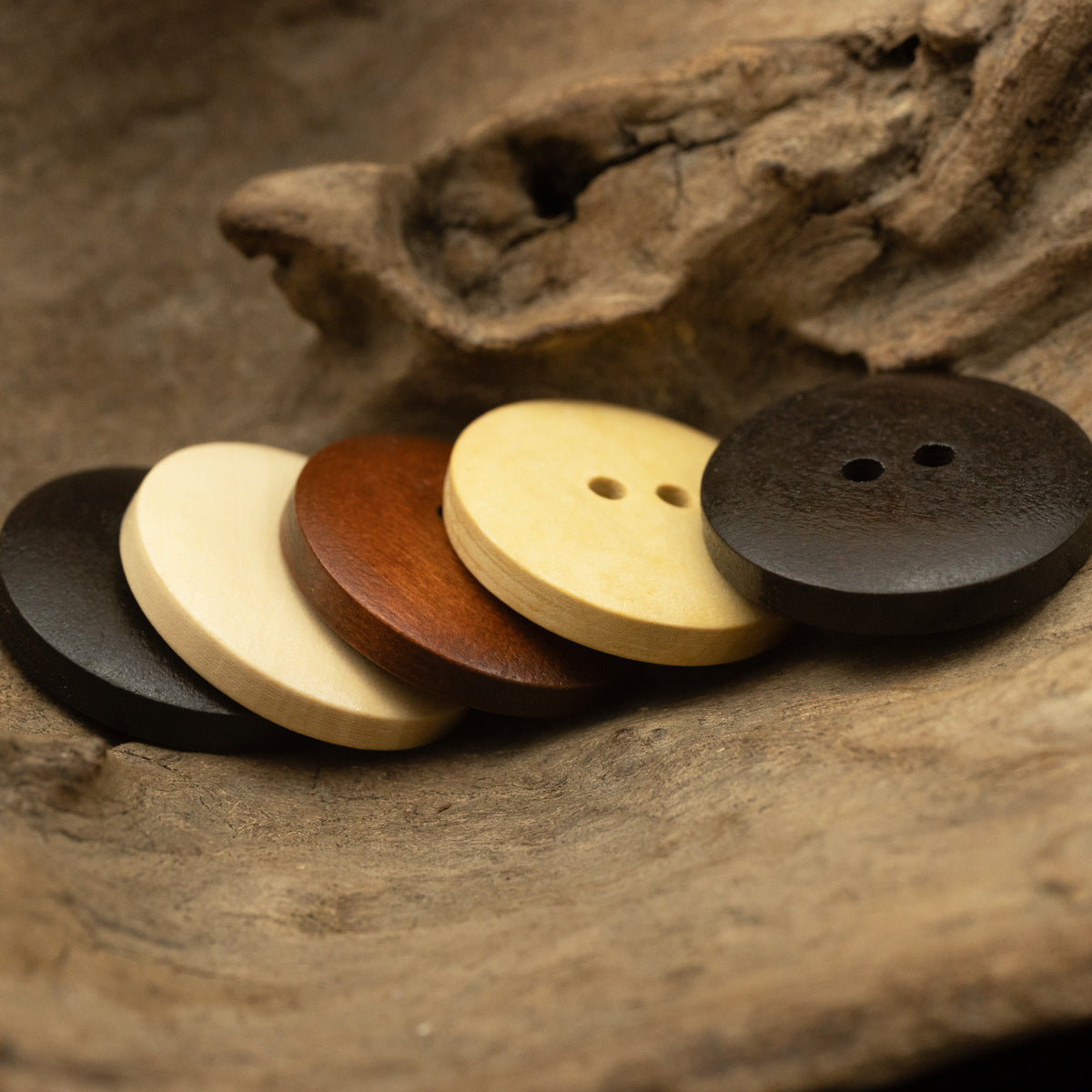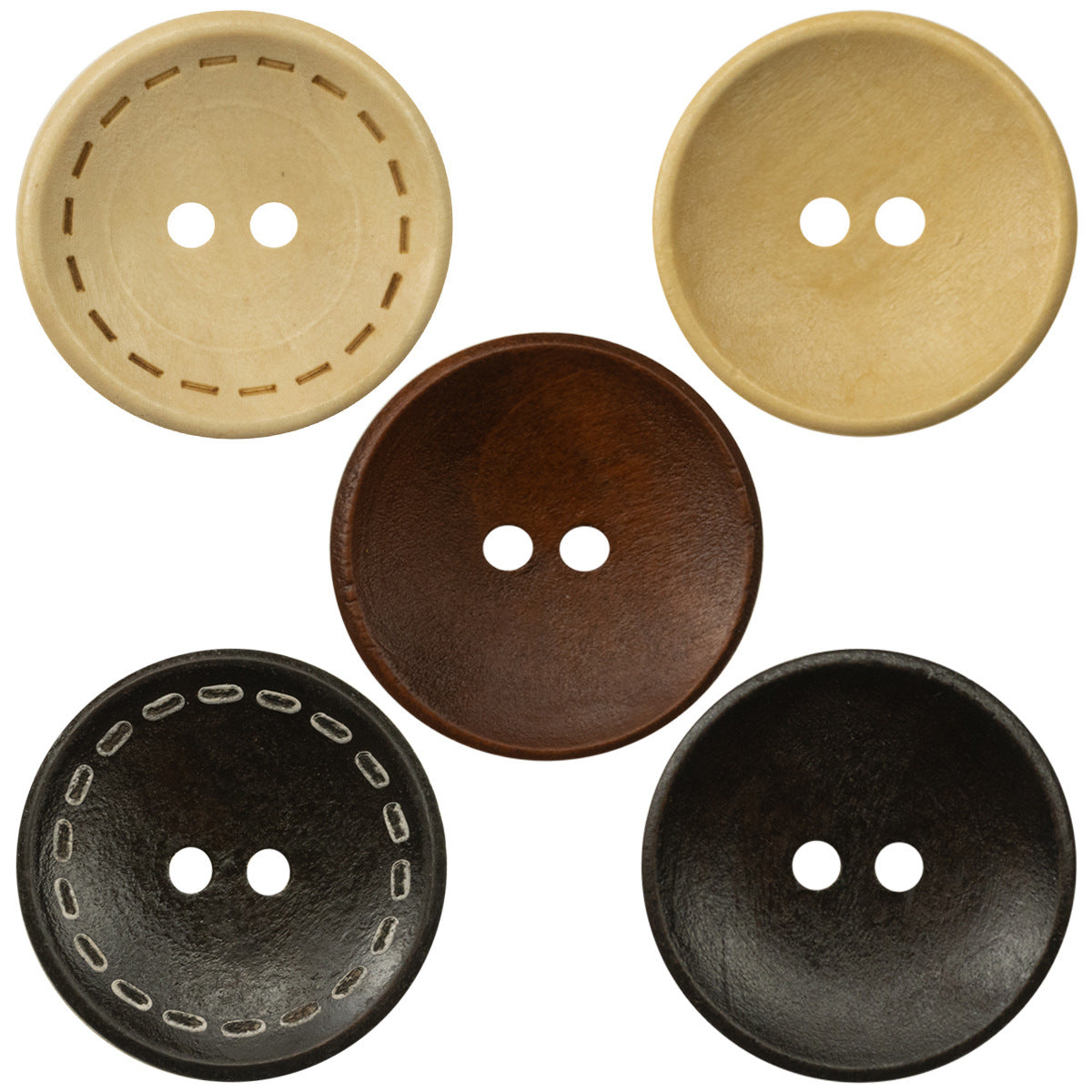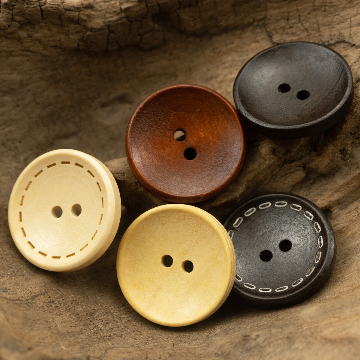 Dřevěné knoflíky s dvěma dírkami, tvar mísy, balení 50 kusů