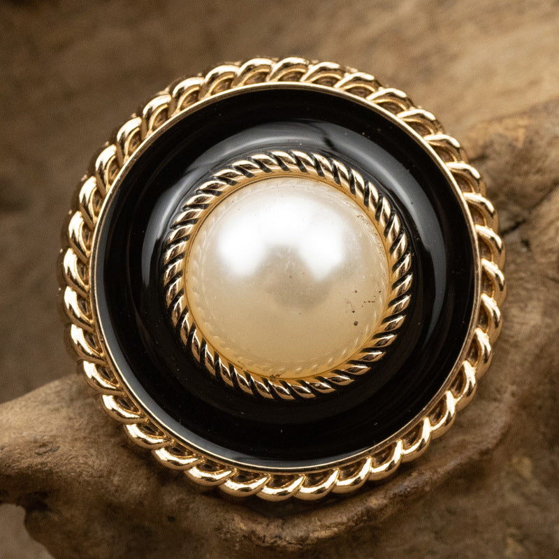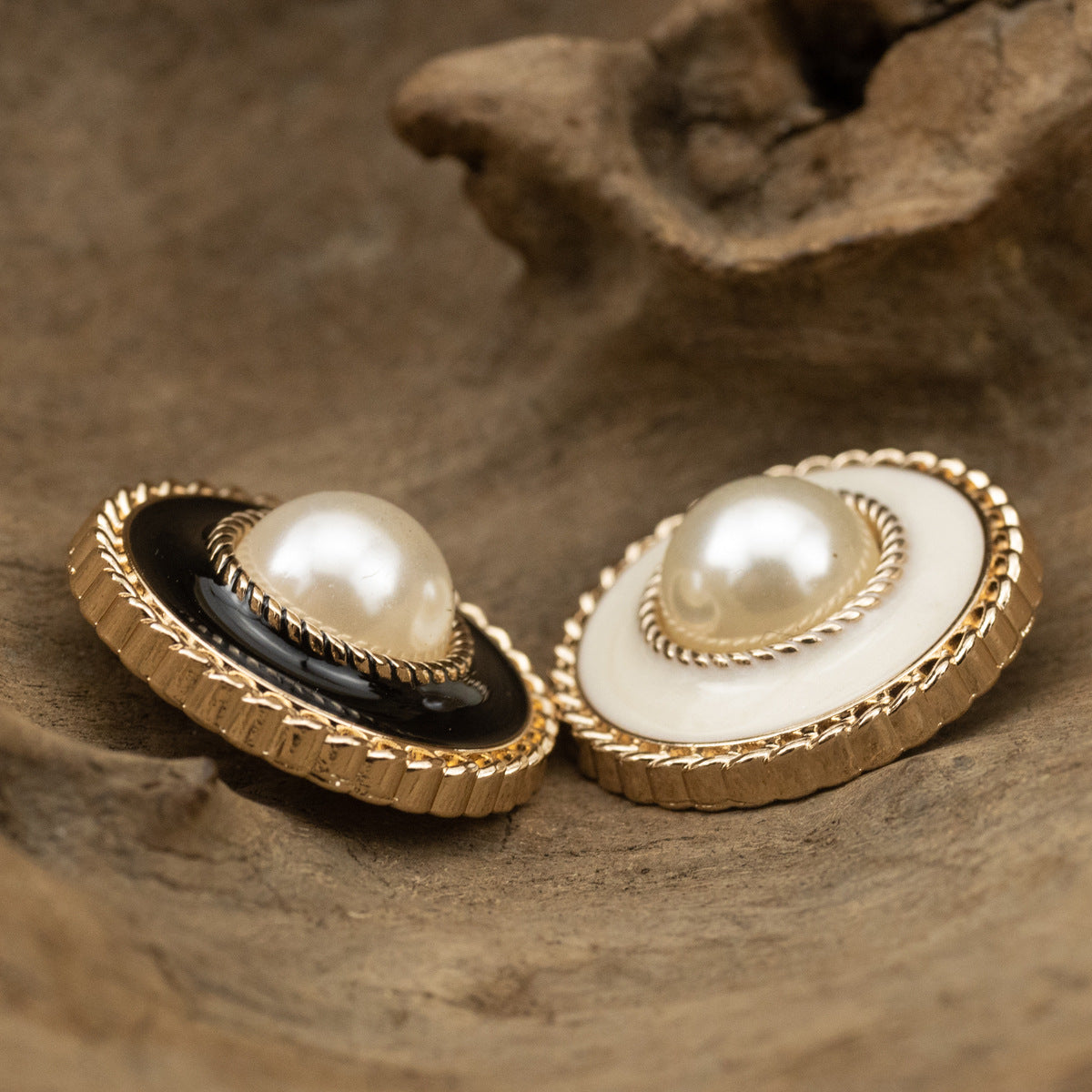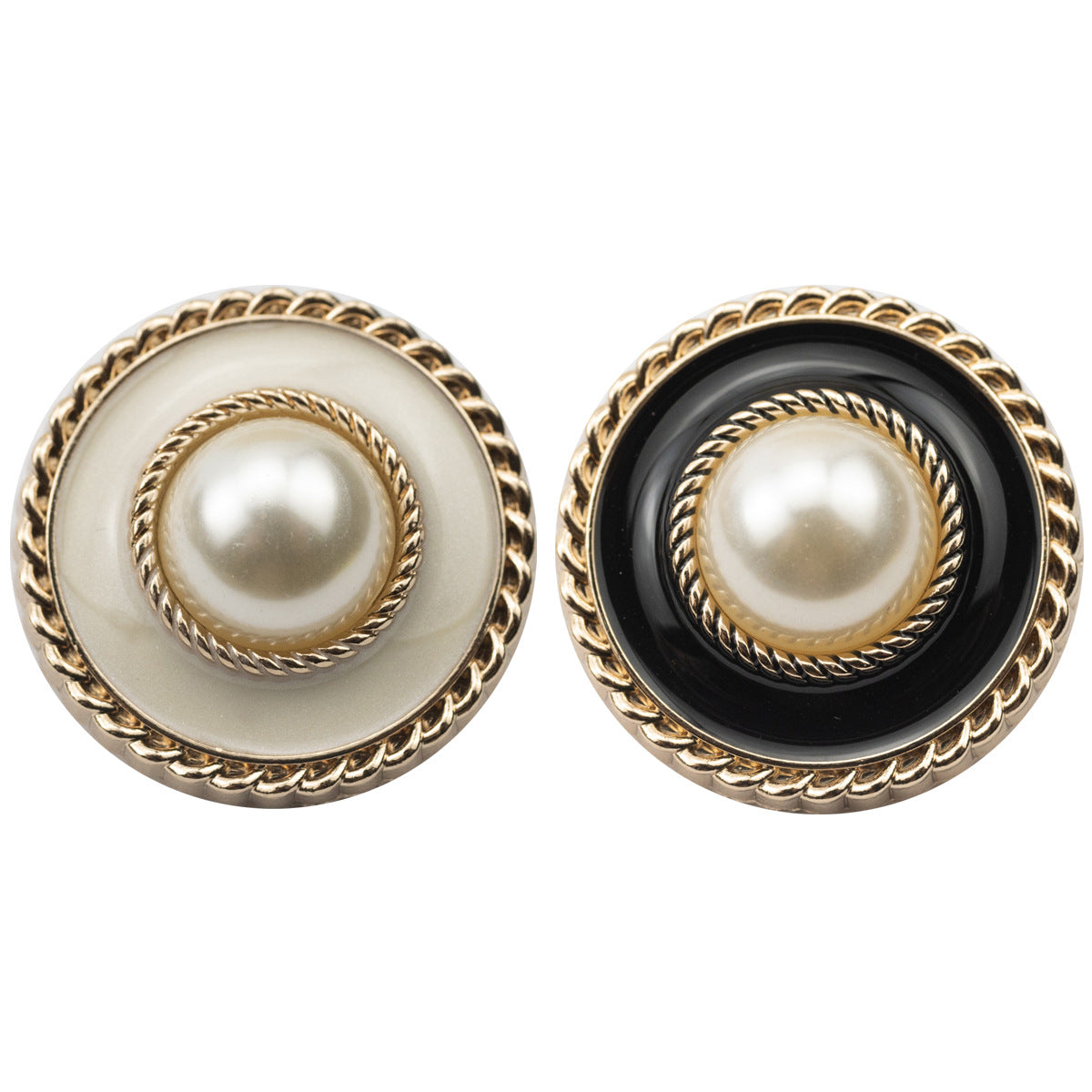 Vintage černobílé perlové kovové knoflíky pro dámské kabáty a šaty 10KS