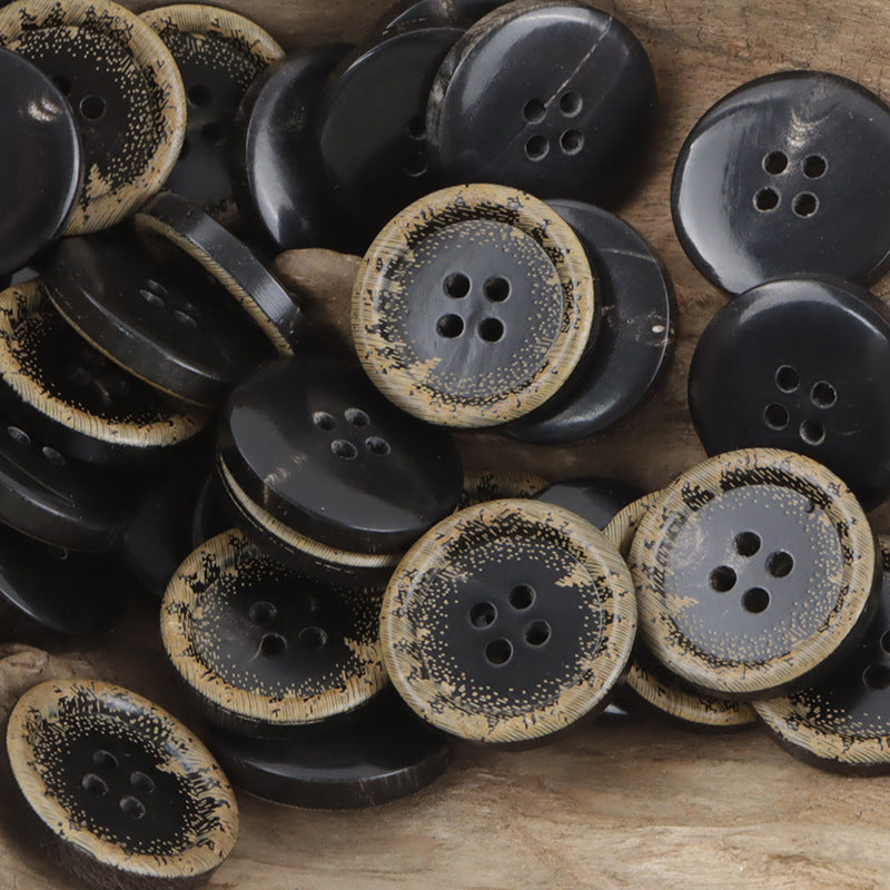 Vintage knoflíky z přírodního černého rohu s opáleně žlutým okrajem pro jarní obleky, svetry a kardigany 10ks