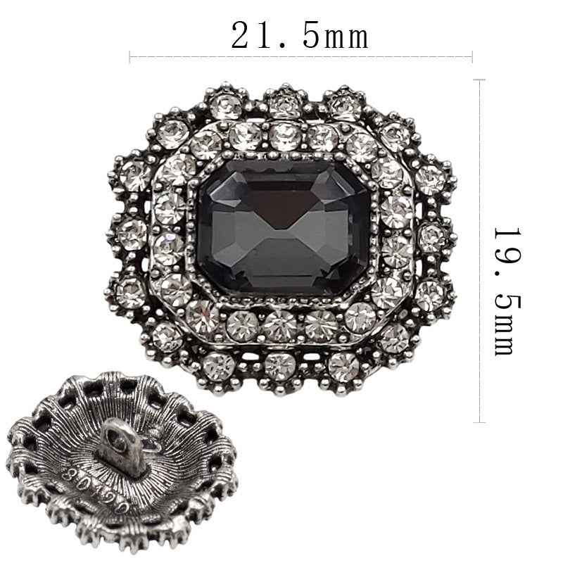 Vintage lesklé skleněné dlouhé osmihranné knoflíky – iridiscentní šedé kamínky a kovové ozdoby 20ks