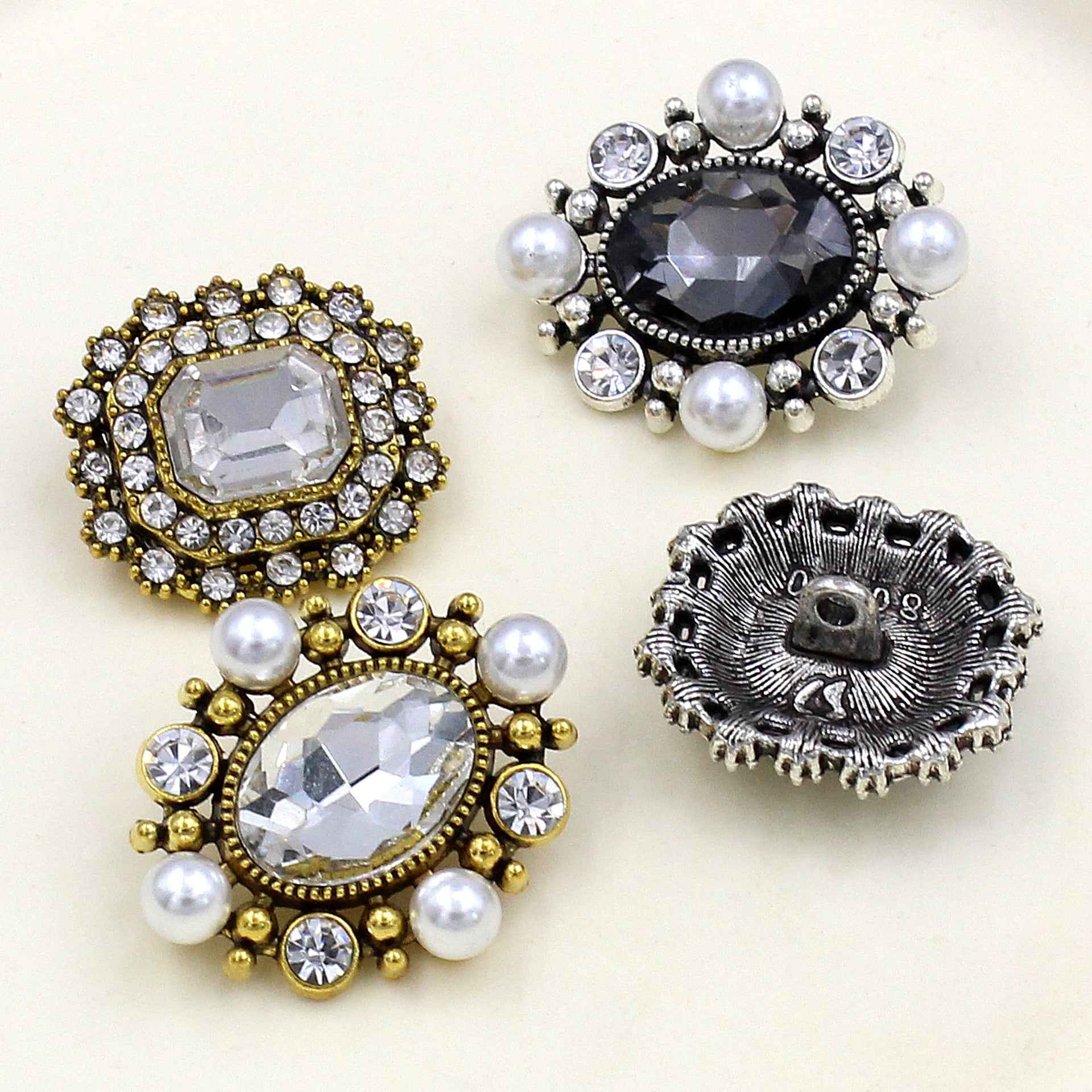 Vintage lesklé skleněné dlouhé osmihranné knoflíky s kamínky z kovu 20 ks