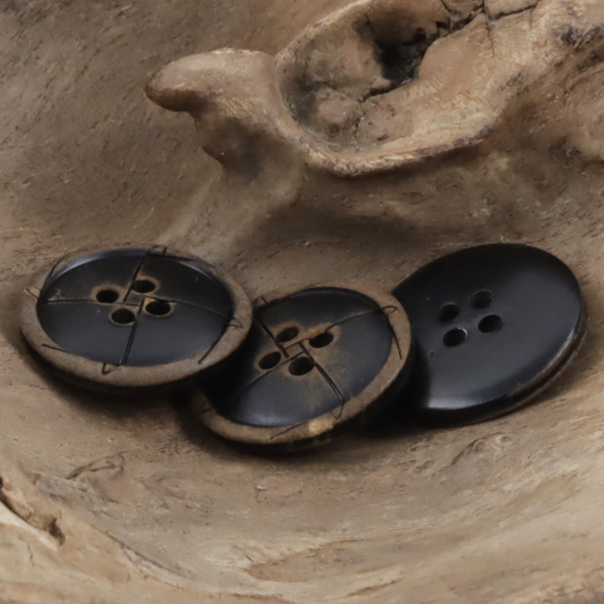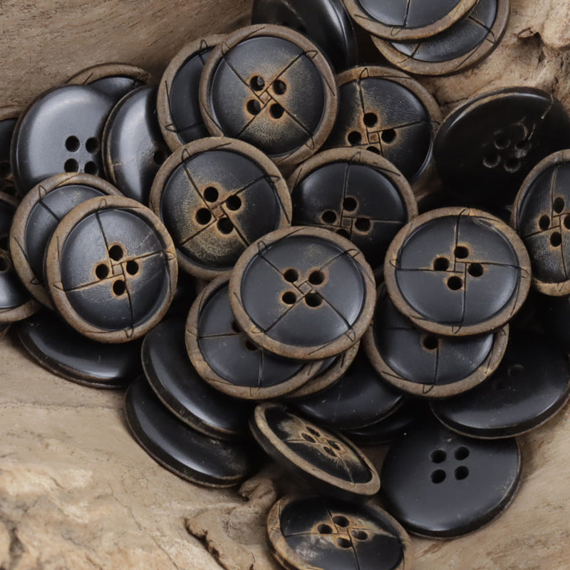 Zažijte spojení tradičního řemesla a moderního designu s našimi vintage knoflíky z pravého černého kravského rohu s laserovým leptáním. Tyto kulaté knoflíky jsou pečlivě vyrobeny z autentického kravského rohu, který nabízí přirozený a luxusní pocit. Laserové leptání vytváří ohromující spálený efekt, který dodává každému knoflíku hloubku a charakter. Díky klasickému čtyřdírkovému designu jsou tyto knoflíky ideální pro upevnění a ozdobení různých oděvů, včetně obleků, kabátů a tradičního oblečení. Jejich černá barva a vintage estetika je činí sofistikovanou volbou pro ty, kteří hledají nádech elegance a vytříbenosti ve svém šatníku.