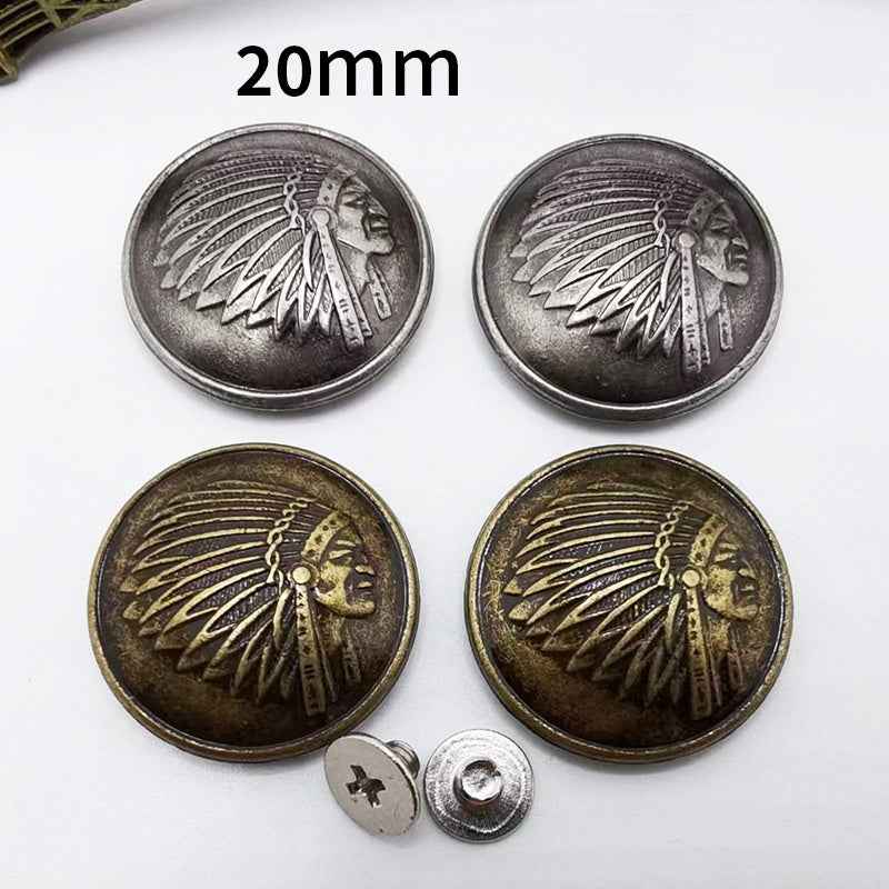 Vintage stříbrné a bronzové šroubovací nýty s indiánskou hlavou – nýty původních Američanů pro kůži a DIY řemesla 20 ks