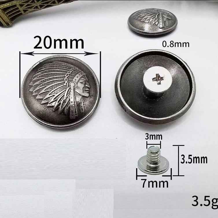 Uctěte kmenové dědictví s těmito vintage šroubovacími nýty s indiánskou hlavou! Tyto dekorativní nýty ze zinkové slitiny obsahují: