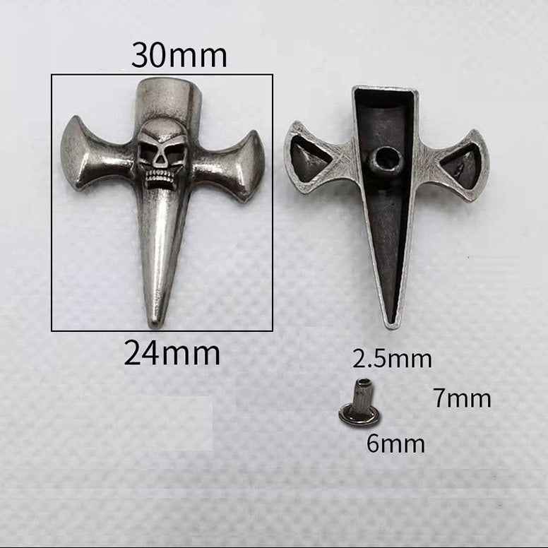 Vintage stříbrné lebka kříž nýty gotický pásek hroty 30ks