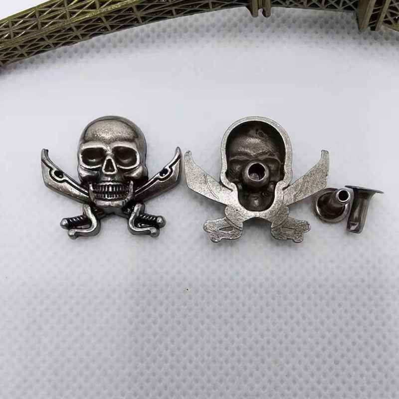 Vintage nýty s lebkou a dýkou – gotické punkové kovové nýty pro DIY zdobení kůže a bund 20 ks (2 velikosti)