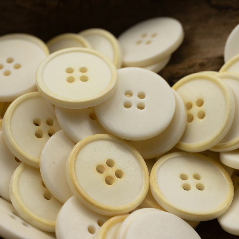 Tyto kulaté čtyřdírkové bílé knoflíky z hovězí kosti jsou ideální volbou pro přidání nádechu elegance a sofistikovanosti k dámským lněným a bavlněným košilím.