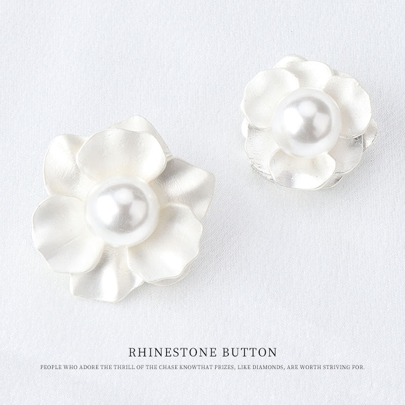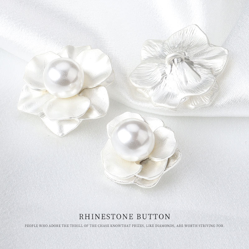 Bílý perlový květinový knoflík s držadlem pro dámské kabáty 5 ks