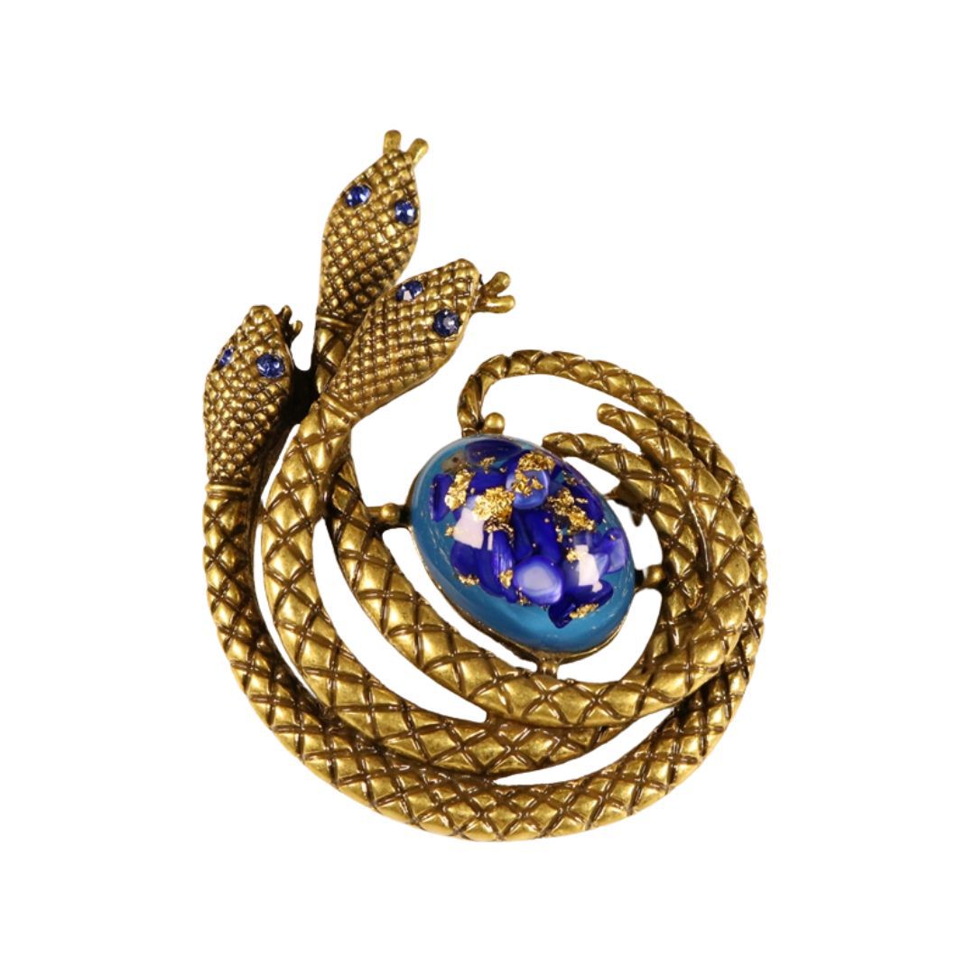 Gylden kinesisk drage indlagt med blå krystal broche 3 stk