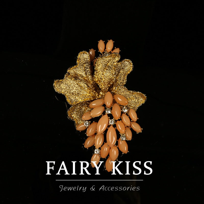 Håndlavet blad vintage broche med blomsterkæde 5 stk