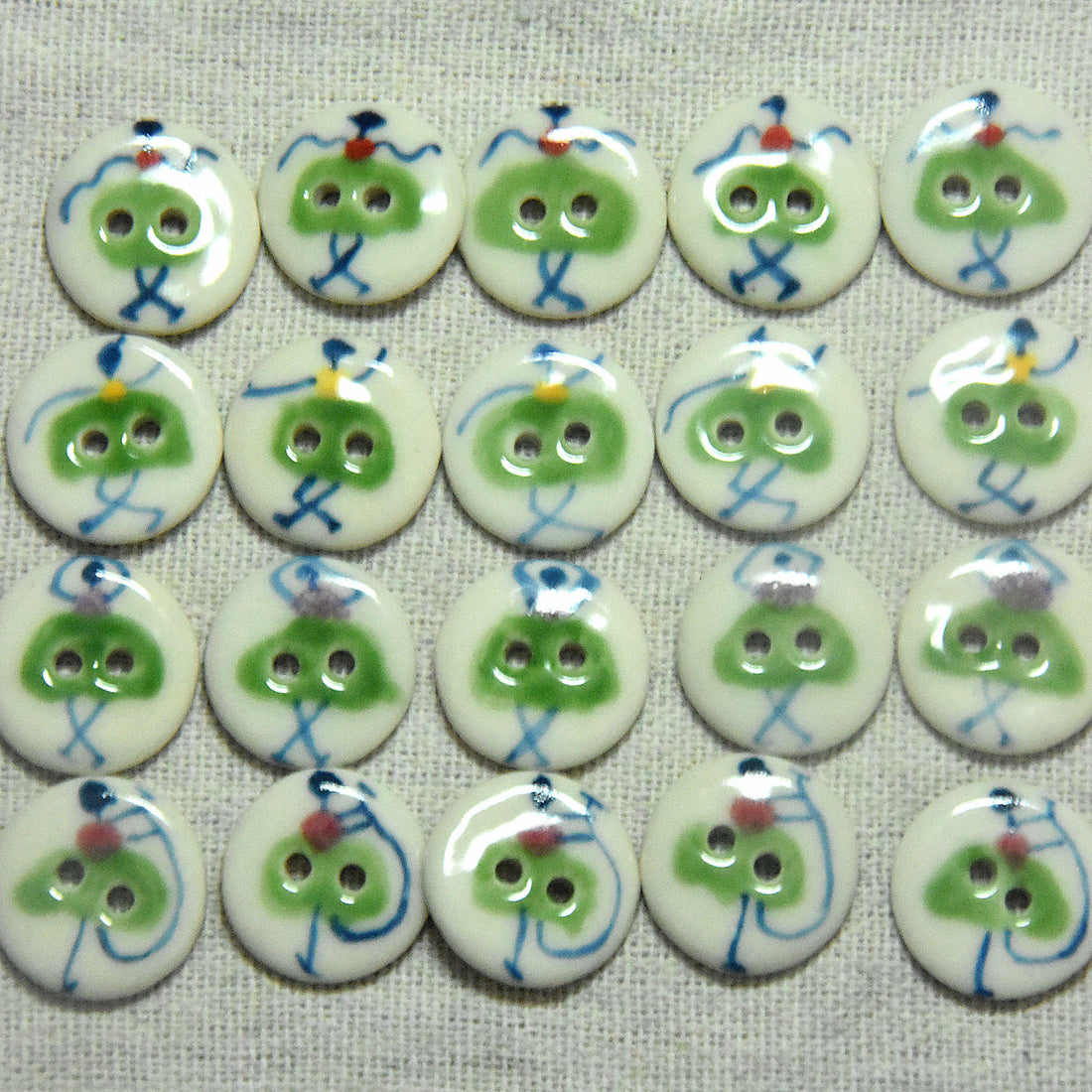 15mm 2 huls håndlavede håndmalede keramiske knapper med blomsterbølge prikkede mønstre 4 stk