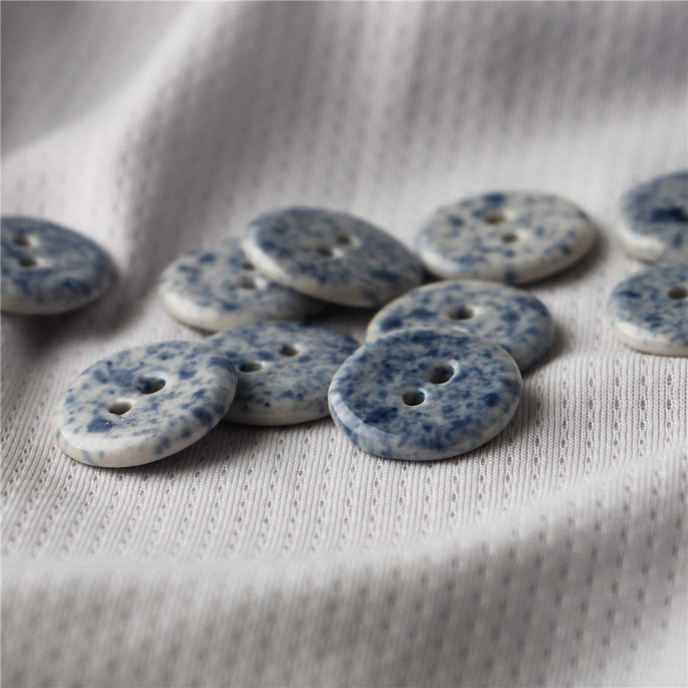 18/30mm blå runde og trekantede 2-huls keramiske knapper til frakkedekoration 5 stk.