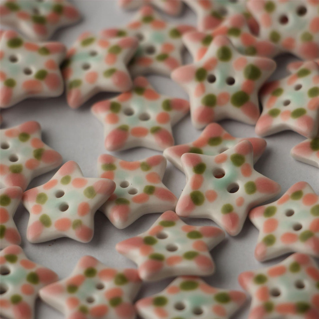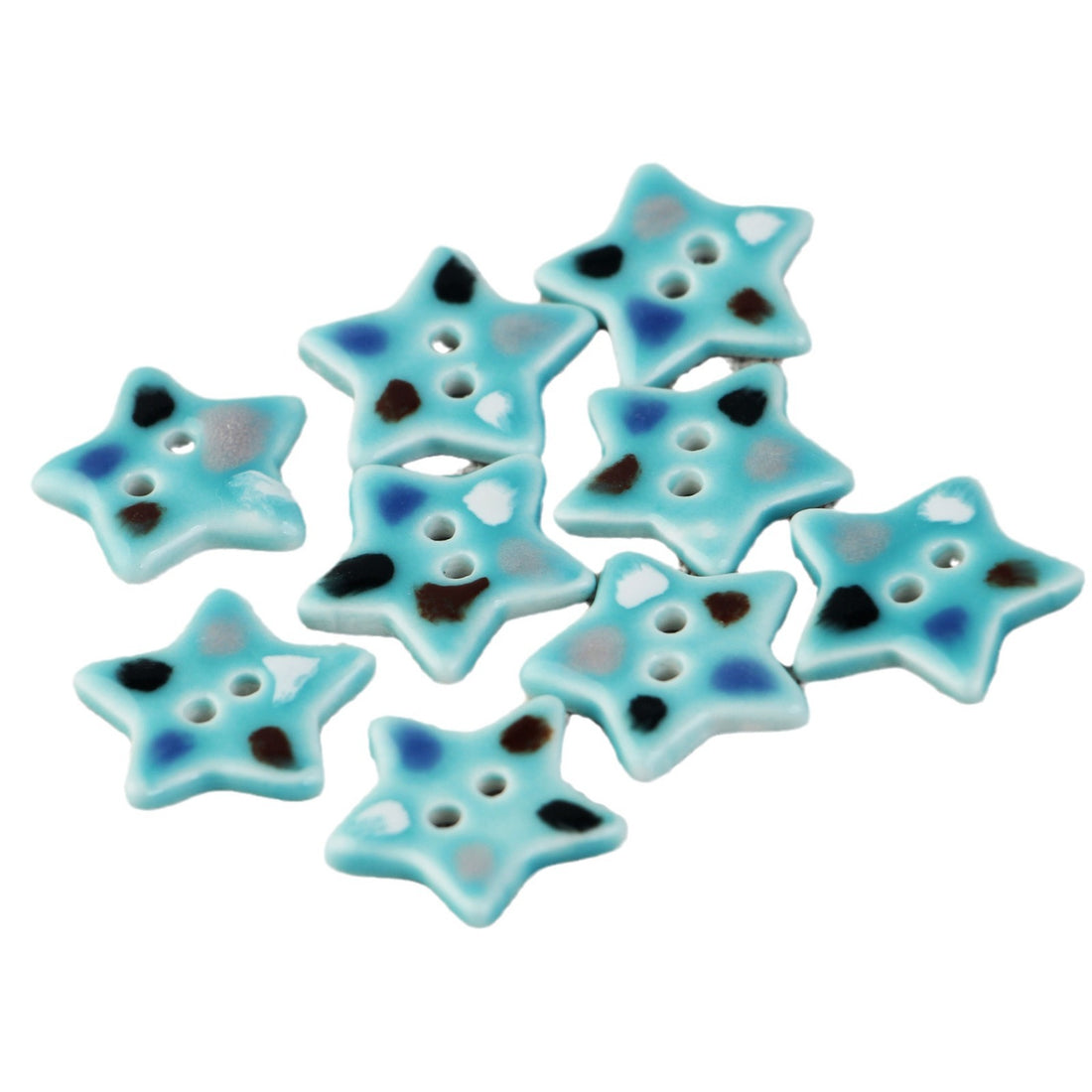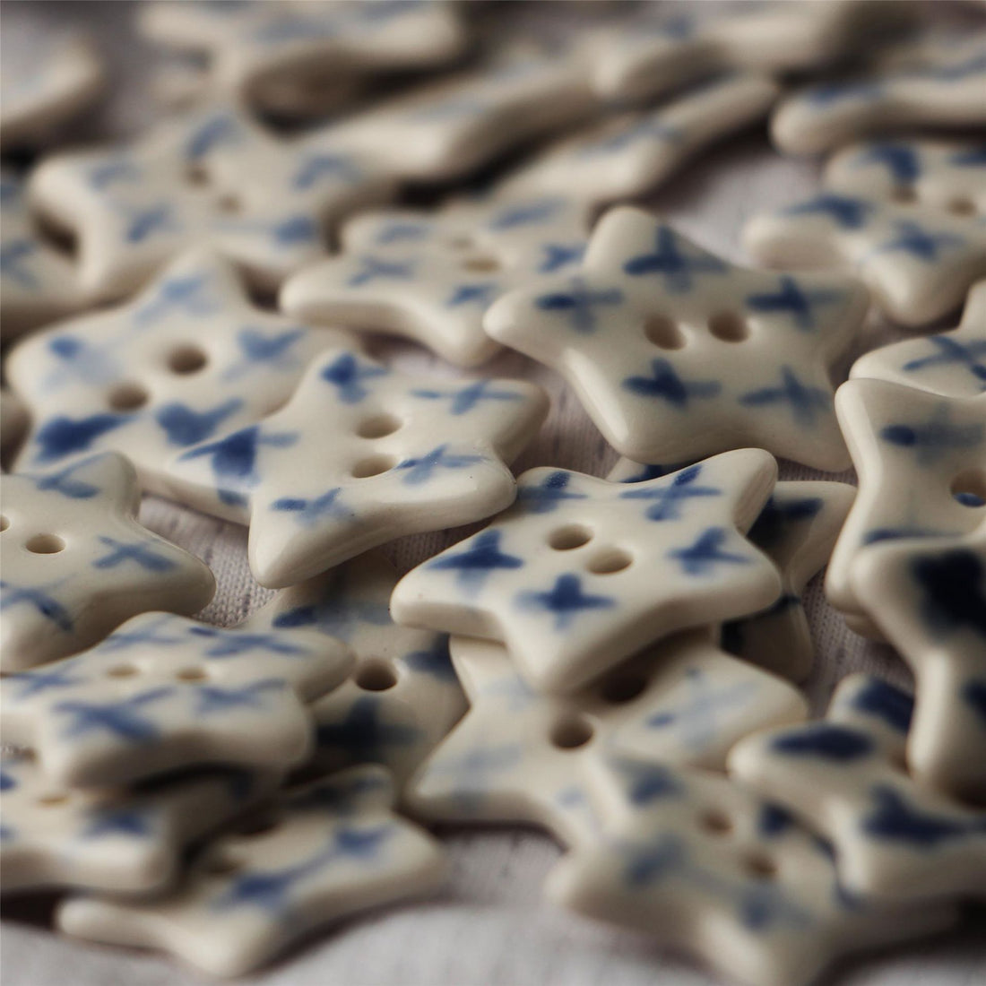 20mm femkantet stjerne 2-huls keramiske knapper til håndlavet DIY smykker 10 stk.
