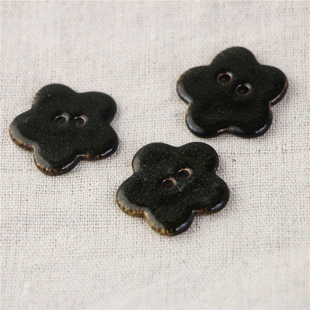 Sort og grå fembladet kløver håndlavede keramiske 2-huls syknapper 3 stk.