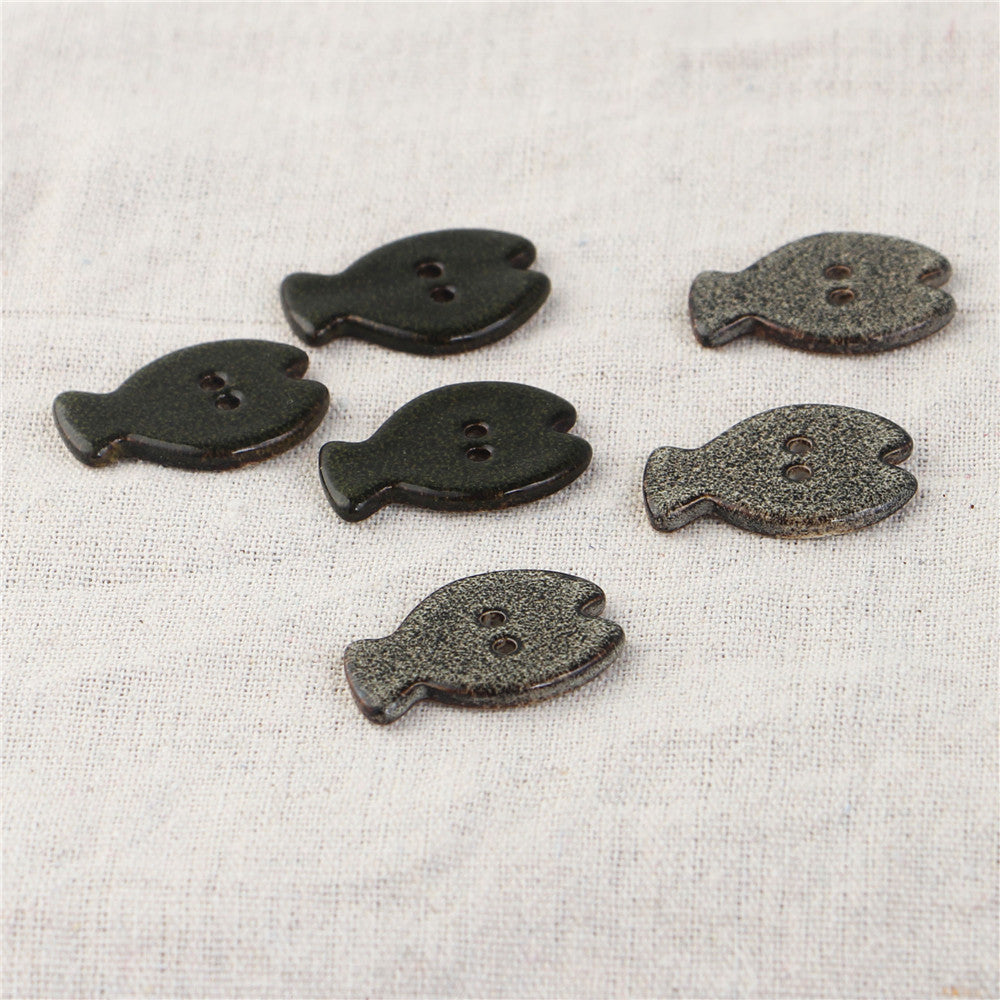 33x24mm sorte og grå fiskformede 2-huls håndlavede keramiske knapper 3 stk