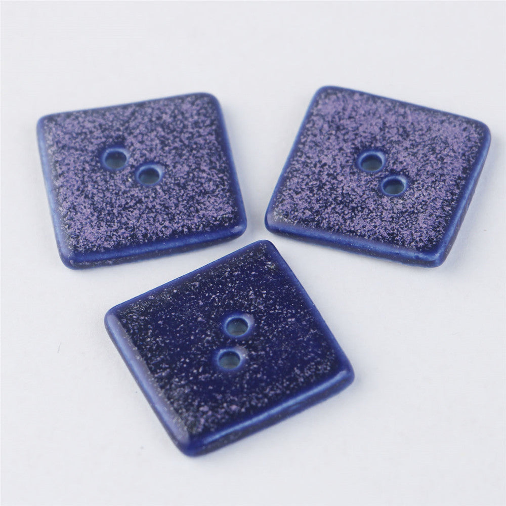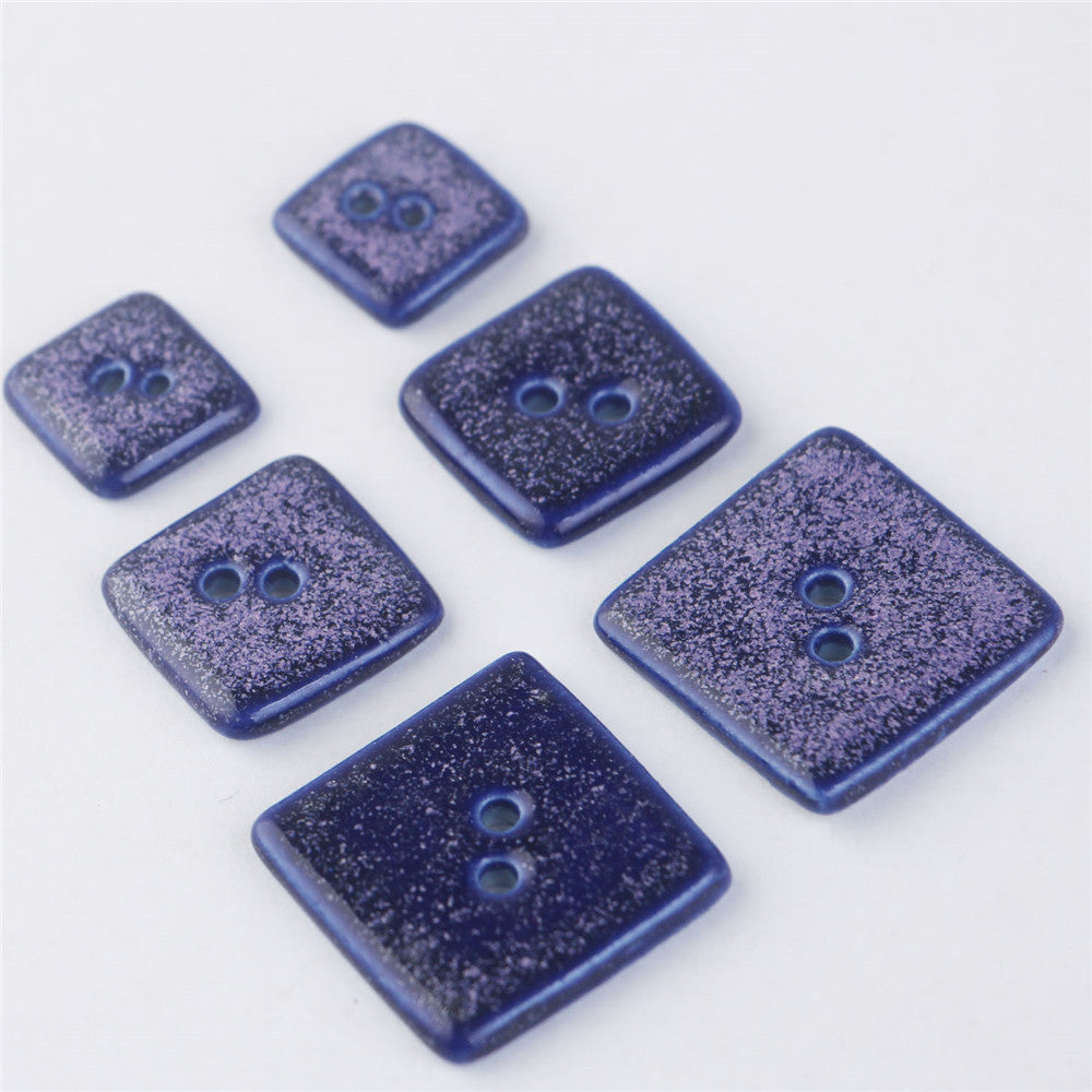 Mønstret blå firkantet og sekskantet 2-huls keramiske håndlavede knapper 6 stk
