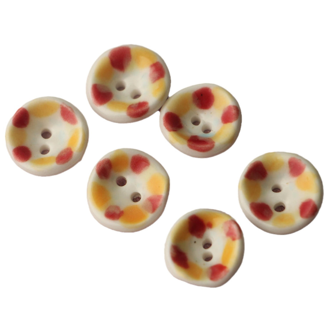 16mm Røde Gule Blå Runde 2-huls Keramikknapper til DIY-armbånd 10 stk