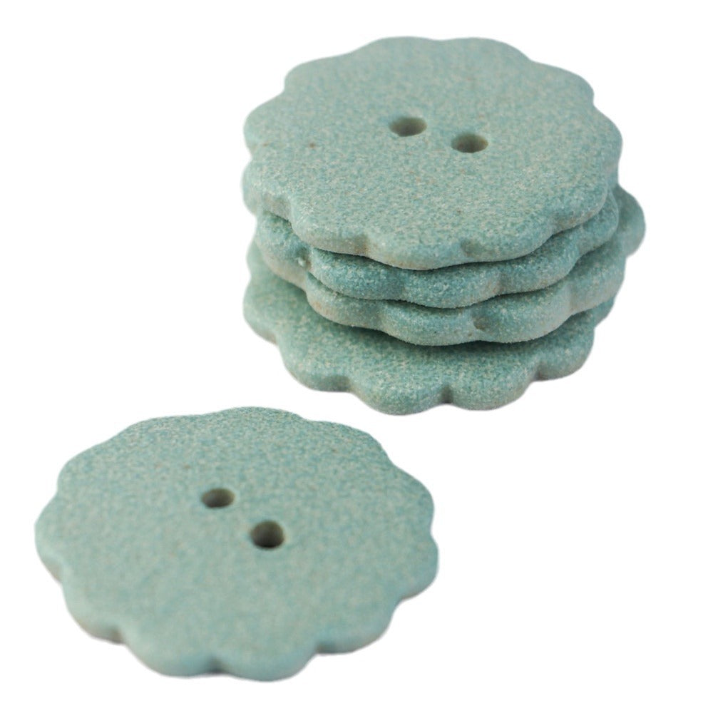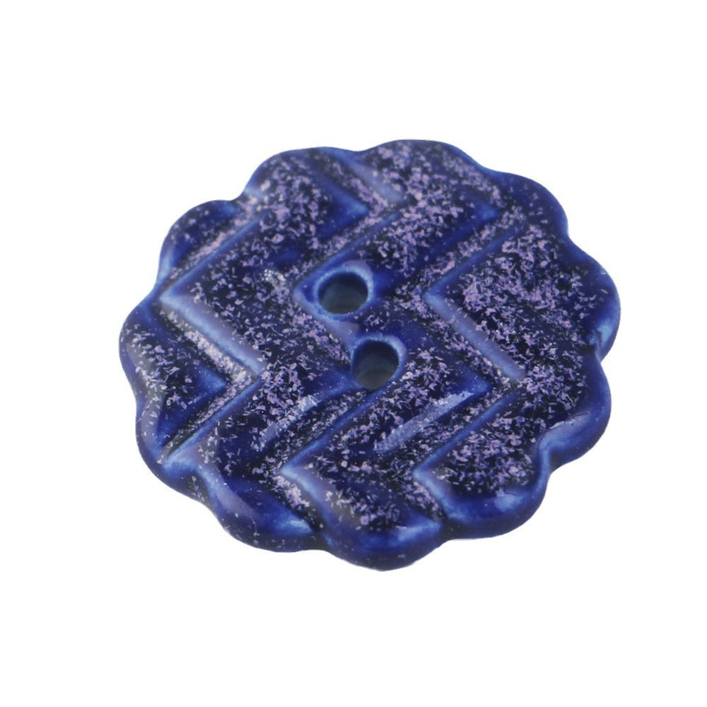 32mm blå tandhjulsformede 2-huls keramiske håndlavede knapper 3 stk