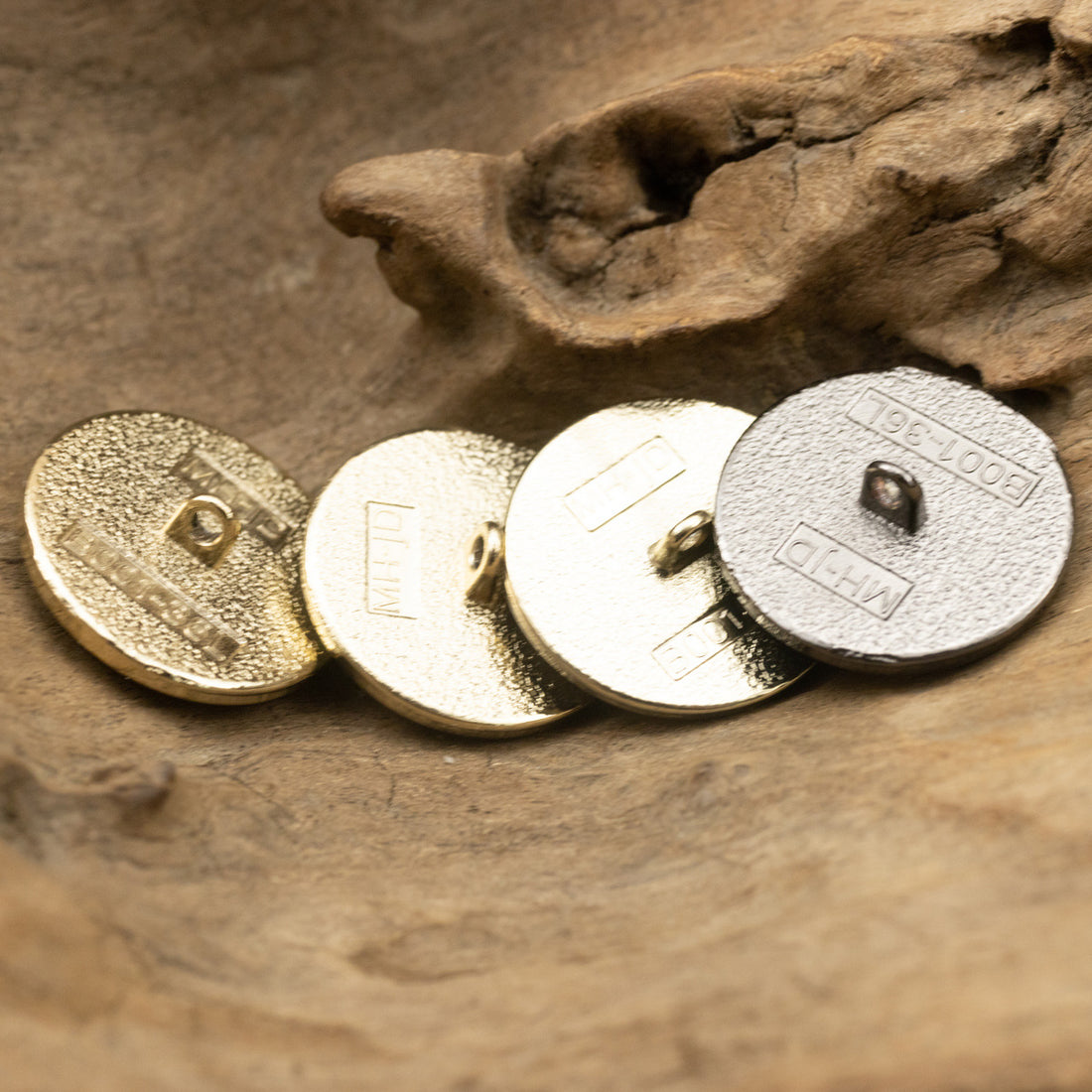 Runde hule knapper i linned og gyldent metal til jakkesæt, 10 stk