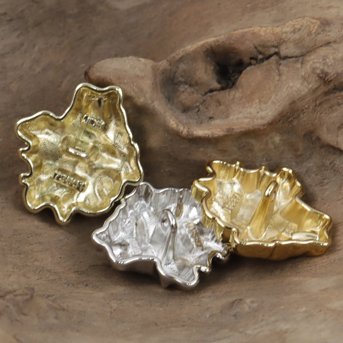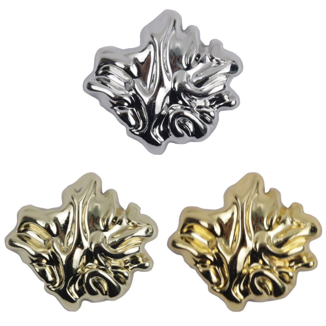 3D bladformede metalknapper med skaft guld sølv 10 stk