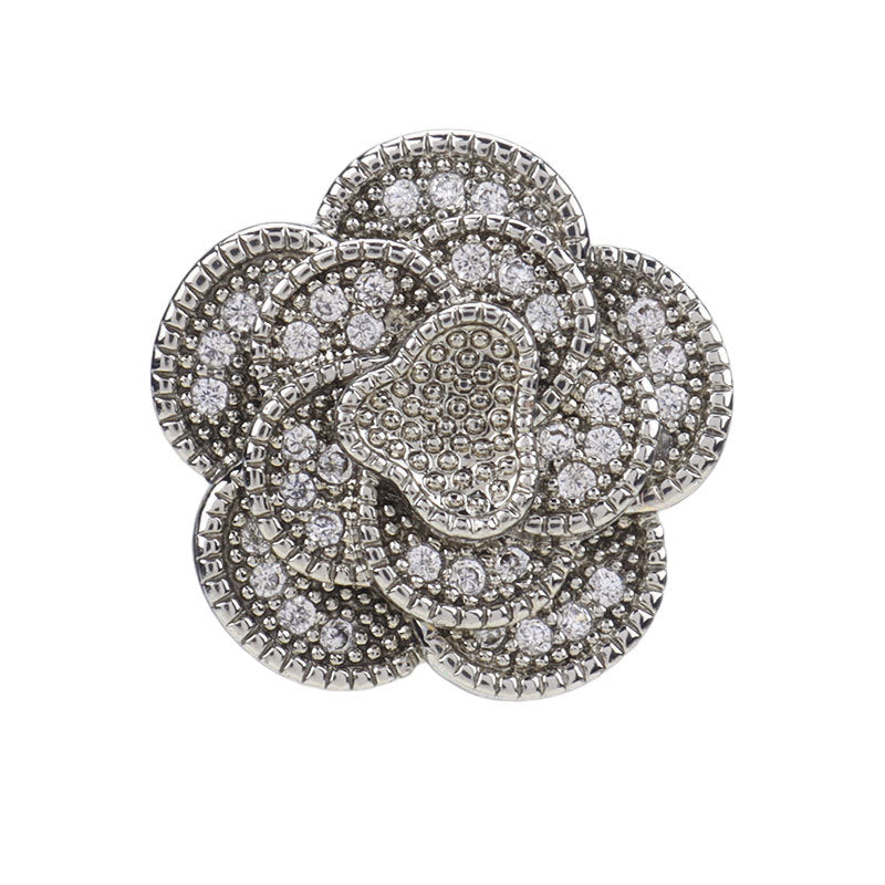 15mm gyldne sølv tredimensionelle kamelia knapper med fulde rhinsten 2 stk