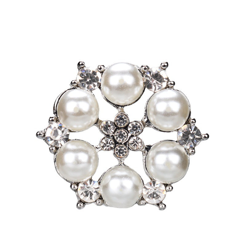 28mm sølv rhinsten perle håndsyede knapper til trøjer 4 stk