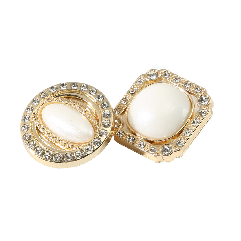 18/21mm firkantede runde gyldne metalknapper med rhinsten perle 10 stk
