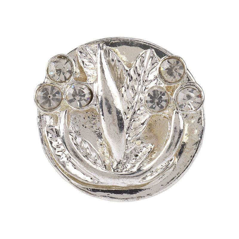 21mm Runde Sølvbladformede Rhinsten Metalknapper med Skaft 6 stk