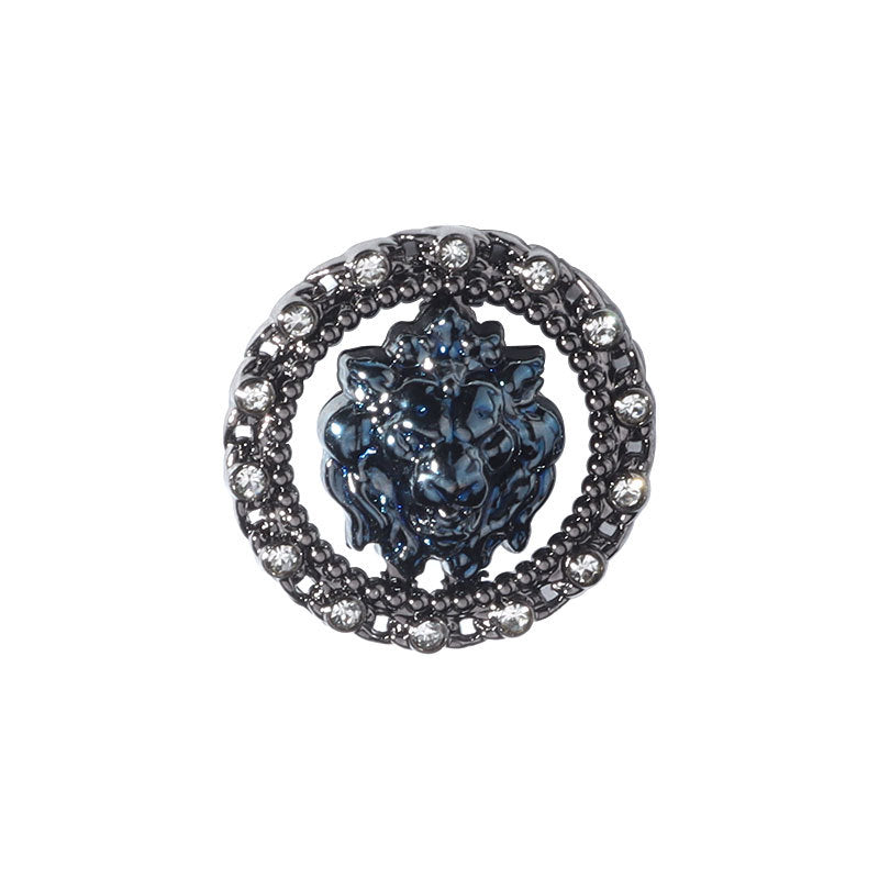 22mm Runde Mørkeblå Metal Rhinsten Knaphuller med Løvehoved 12 stk