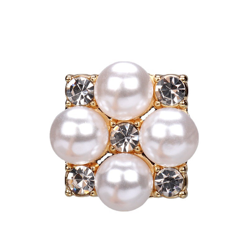 20mm Perle Rhinsten Knap - Firkantet Metalbase med Skaft 6 stk