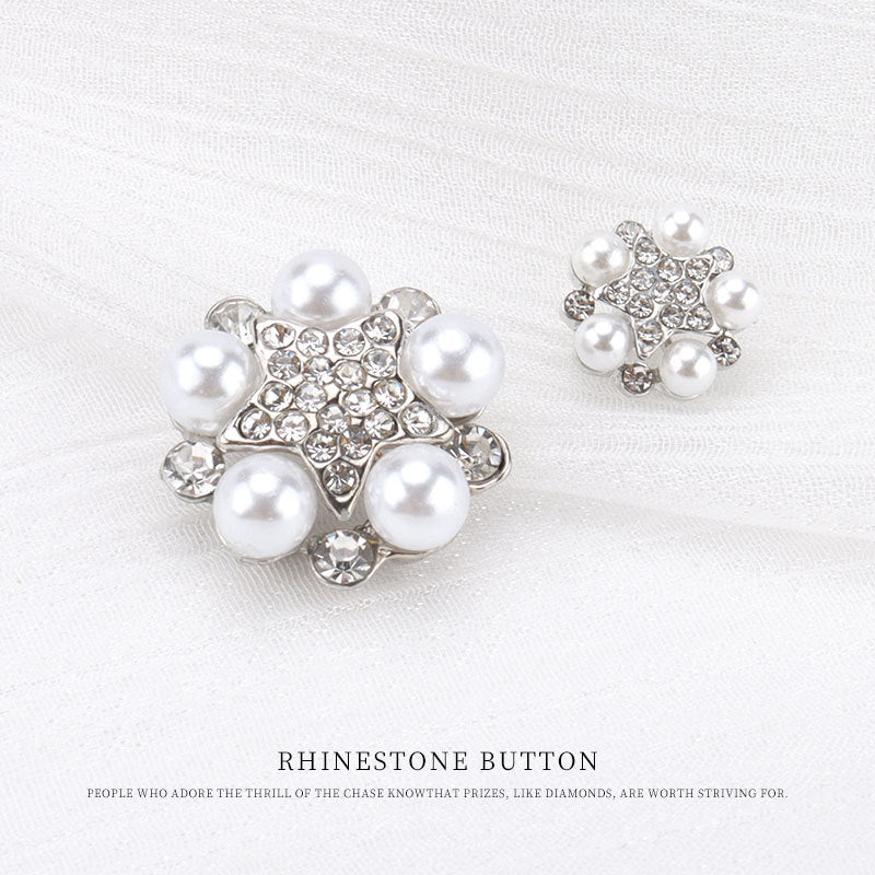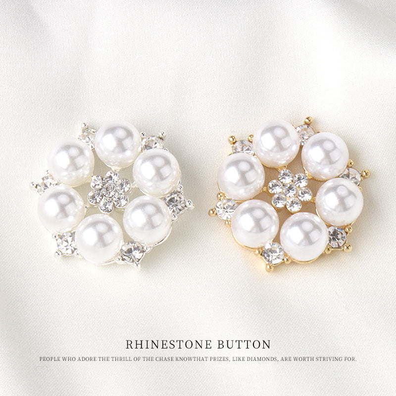 22mm Metal Perle Rhinsten Dekorativ Diamant Blomstret Knap 6 stk
