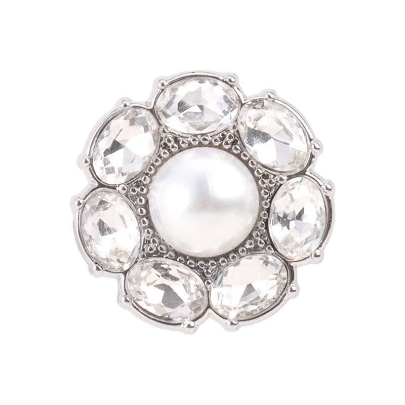21.5mm sølv perlehvid sorte rhinsten metal syknap 6 stk