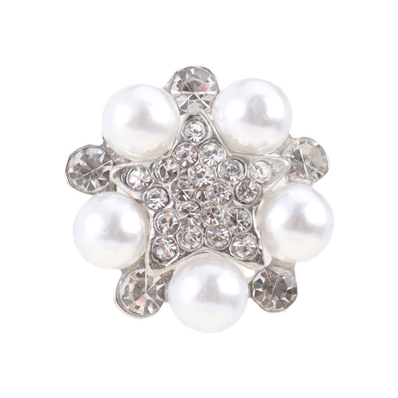 Sølv femtakket stjerne perle rhinsten metal knap 6 stk