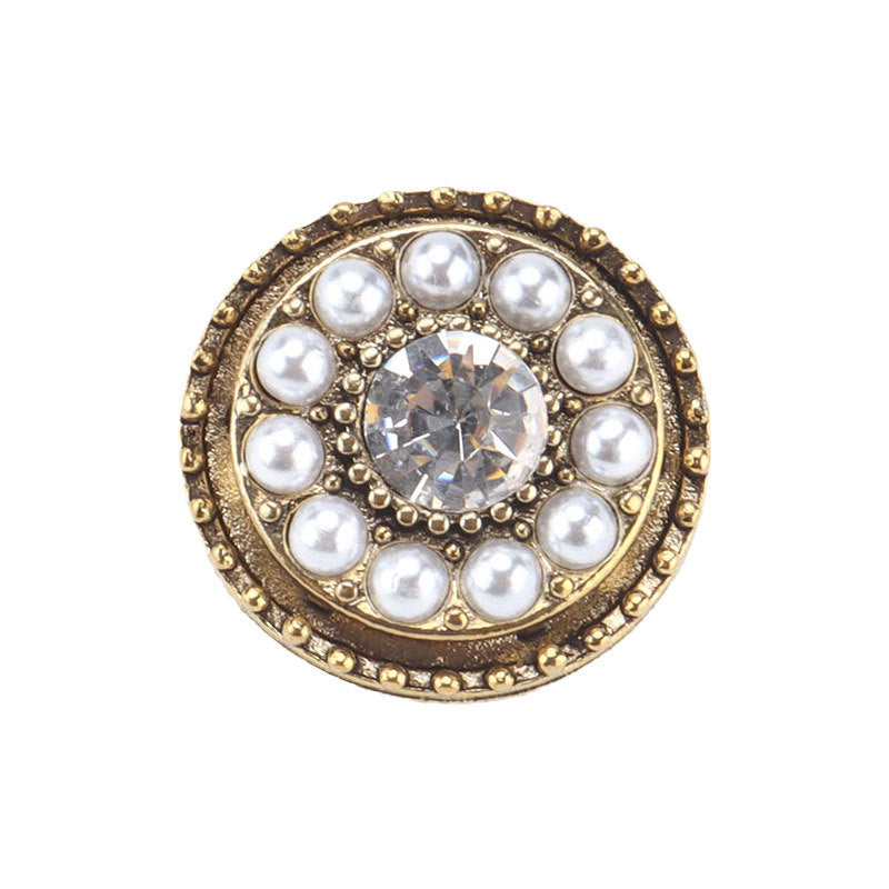 20mm Rund Vintage Antik Guld Perle Rhinsten Metal Skaft Knap 6 stk