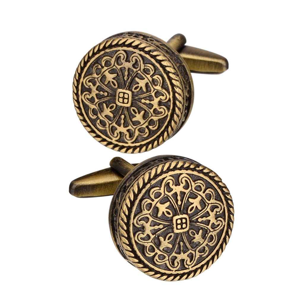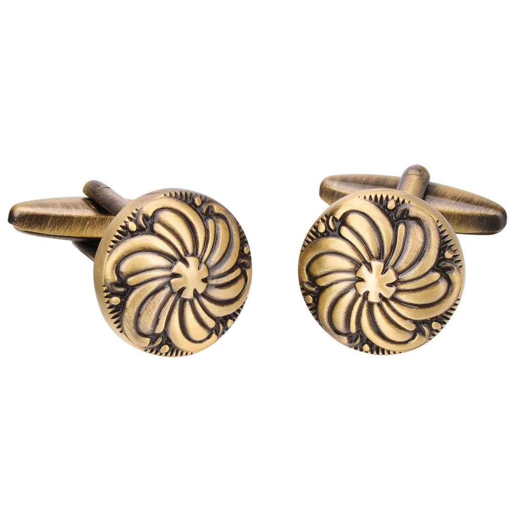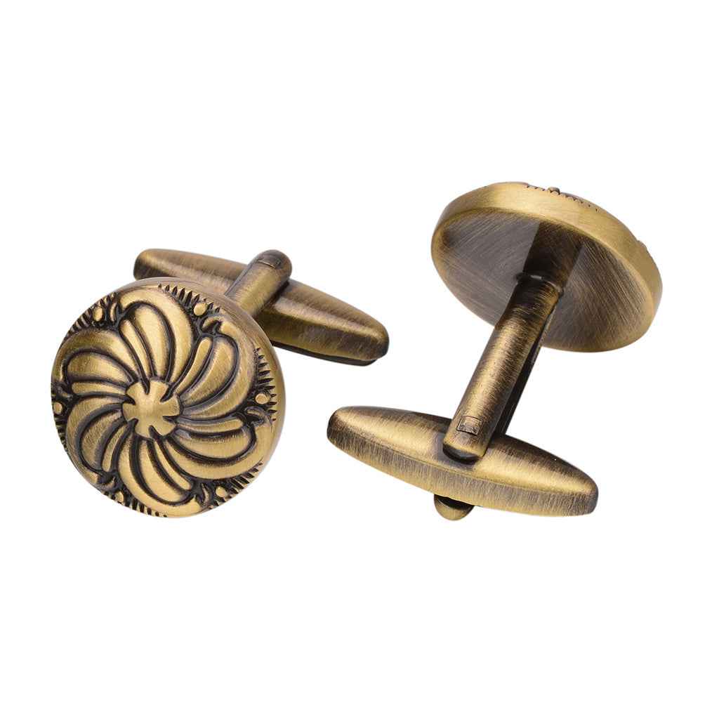 18mm kobber runde manchetknapper med indgraveret blomster mønster onyx sten