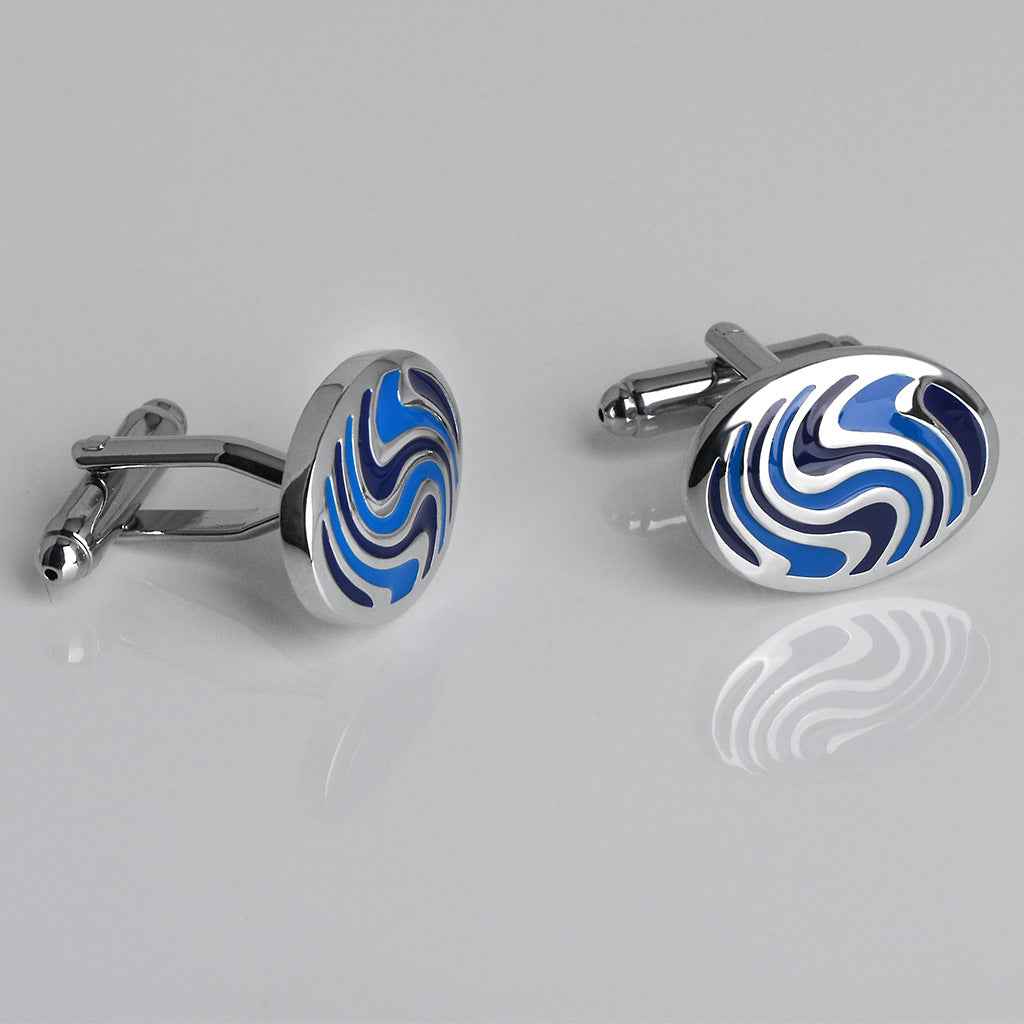Manchetknapper i blå katteøje med messing- og rhodiumbelægning