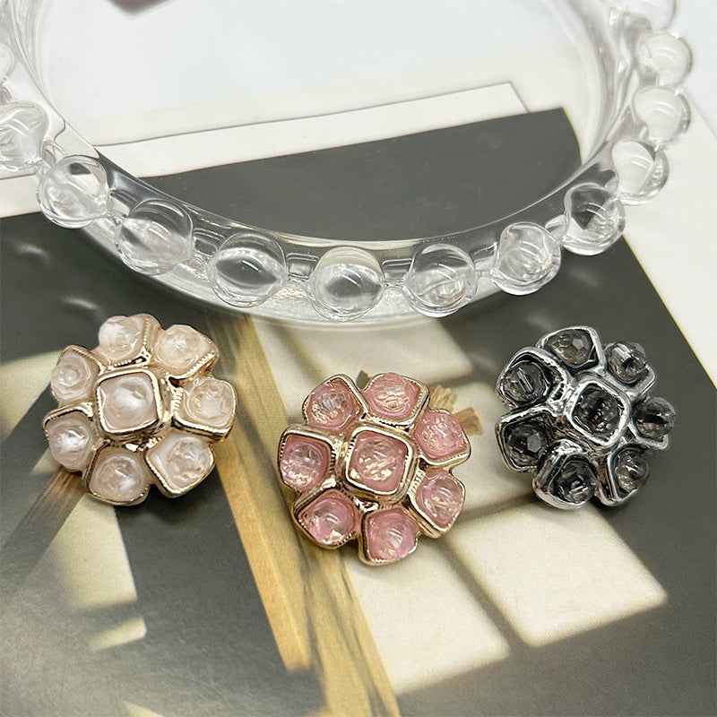 Pink Hvide Sorte Krystal Blomst Metal Knapper til Kvinders Frakker Kjoler 6stk