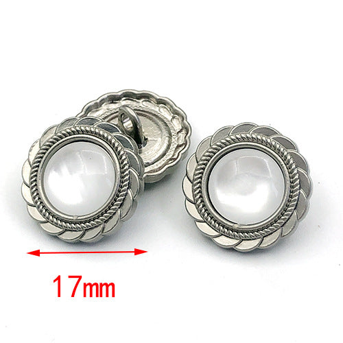 17mm sølv og hvide runde kniplinger metal skaft knapper 20 stk