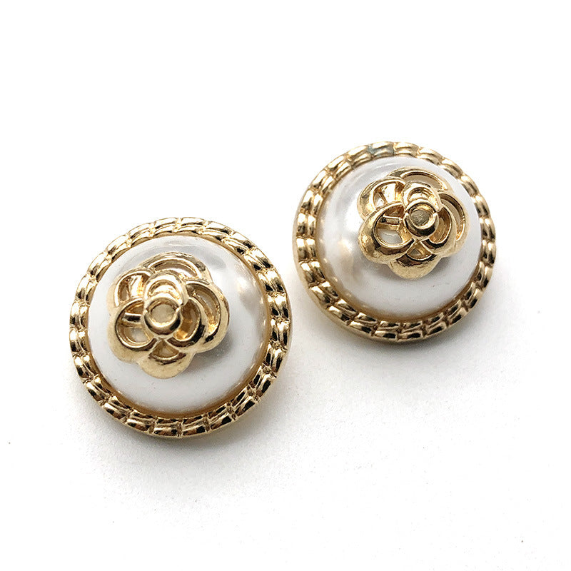 25mm Guld Runde Hule Blonde Perle Metal Skaft Knapper 20stk