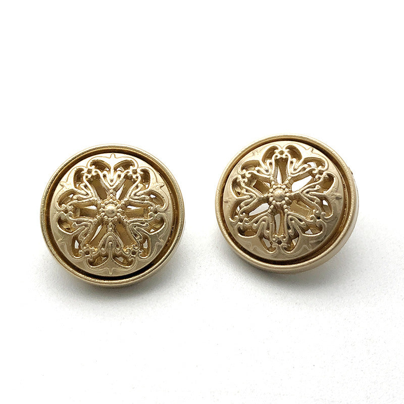 23mm Guld Nikkel Rund Blomstret Metal Skaft Frakkeknap 10 stk