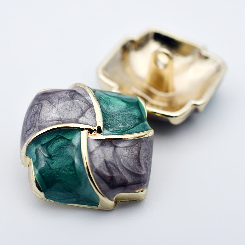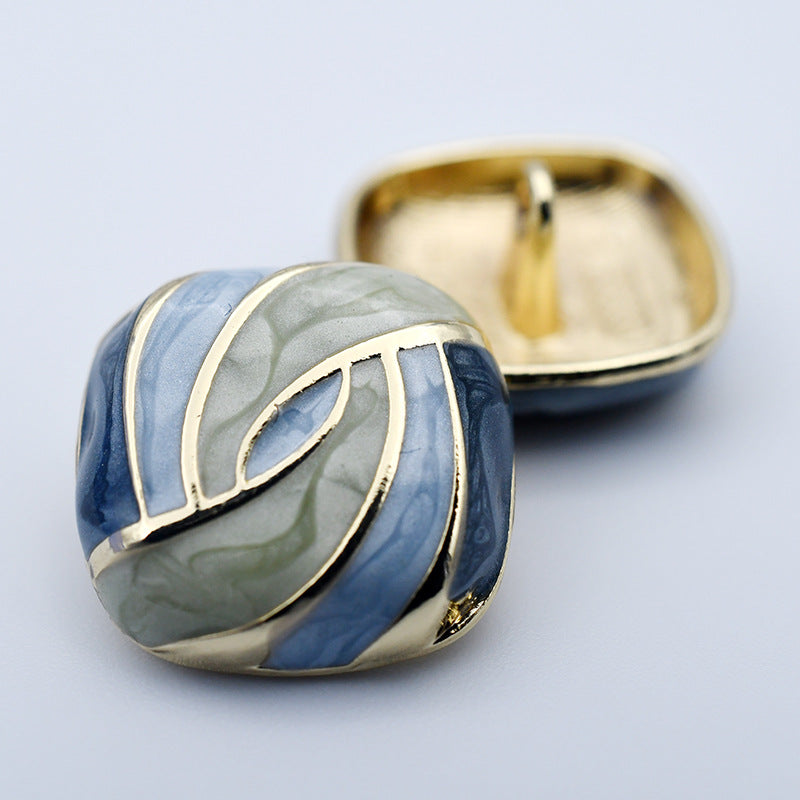20mm firkantede blågrå tre-tone metalknapper med skaft 12 stk.