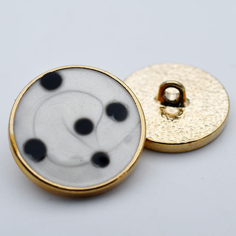 23mm Guld Runde Sorte og Hvide Prik Olie Metal Skaft Knapper 20stk