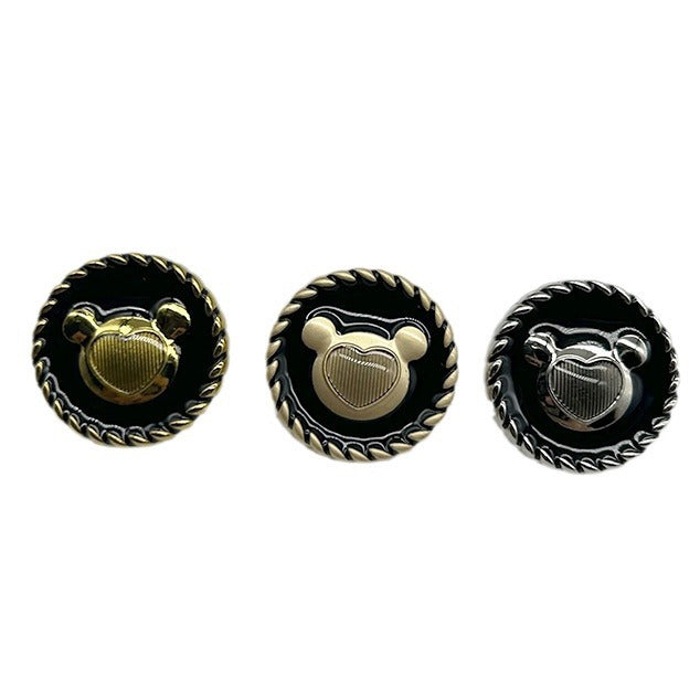 17/23mm Tegneserie Bjørnehoved Sorte Emaljerede Guld Sølv Metal Knapper 50stk
