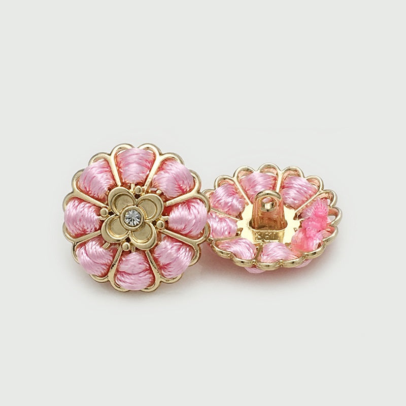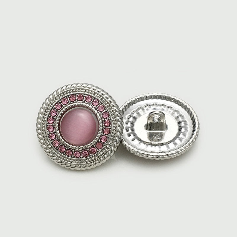 Runde lyserøde-guld metalknapper med cirkulære rhinsten 10 stk
