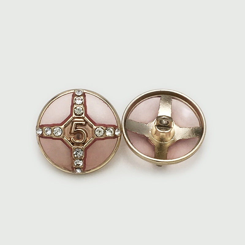 Nummer 5 Runde Lyserøde-Guld Metal Skaft Knapper med Diamant 6 stk