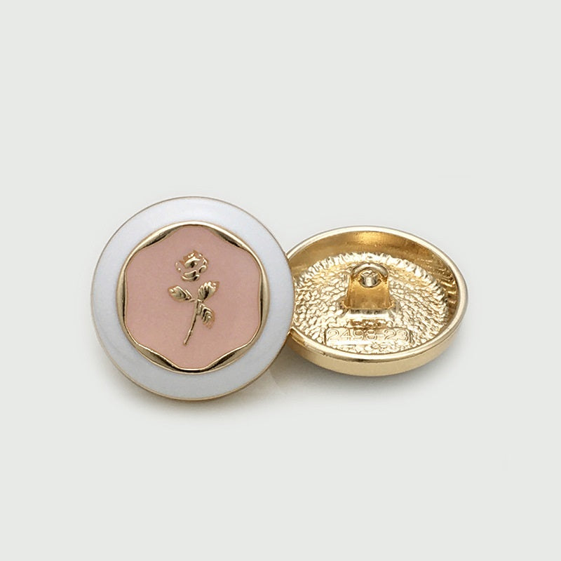 Runde knapper i metal med pink-guld skaft og rosemønster 12 stk